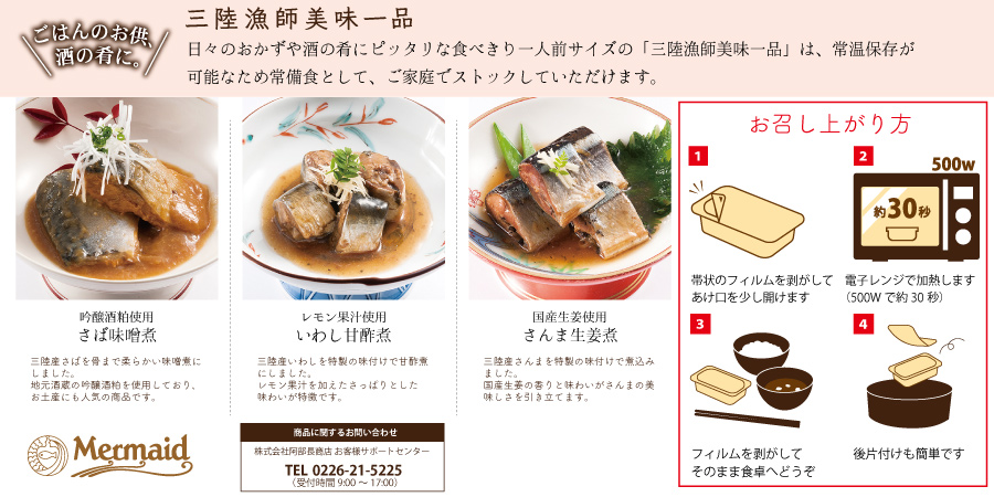 地元の吟醸酒粕を使用した味噌たれで骨まで柔らかく仕上げました。酒粕のまろやかな風味と香りが少し大人の味わい。第43回宮城県水産加工品品評会にて「日本チェーンストア協会東北支部長賞」を受賞した商品です。